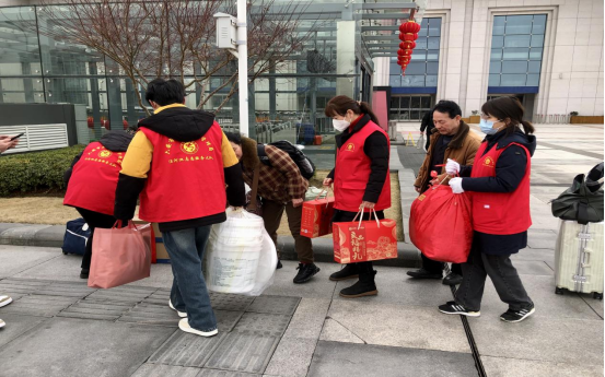 助力春运回家路,展现老区新形象。2月10日至12日,春运关键期,志愿服务队走进火车站,44名志愿队员活跃在站前广场和候车大厅,为返乡旅客提供咨询解答、方向指引、搬运行李等贴心服务500余人次,受到返乡乘客赞赏。一位从江苏返乡的中年女子在志愿者帮助下将行李送至客运南站后,激动地说:“感谢你们帮助我把行李从火车站送到客运南站,否则我一个人不可能这么顺利又轻松买好票等待上车!感谢你们带来的温暖!”