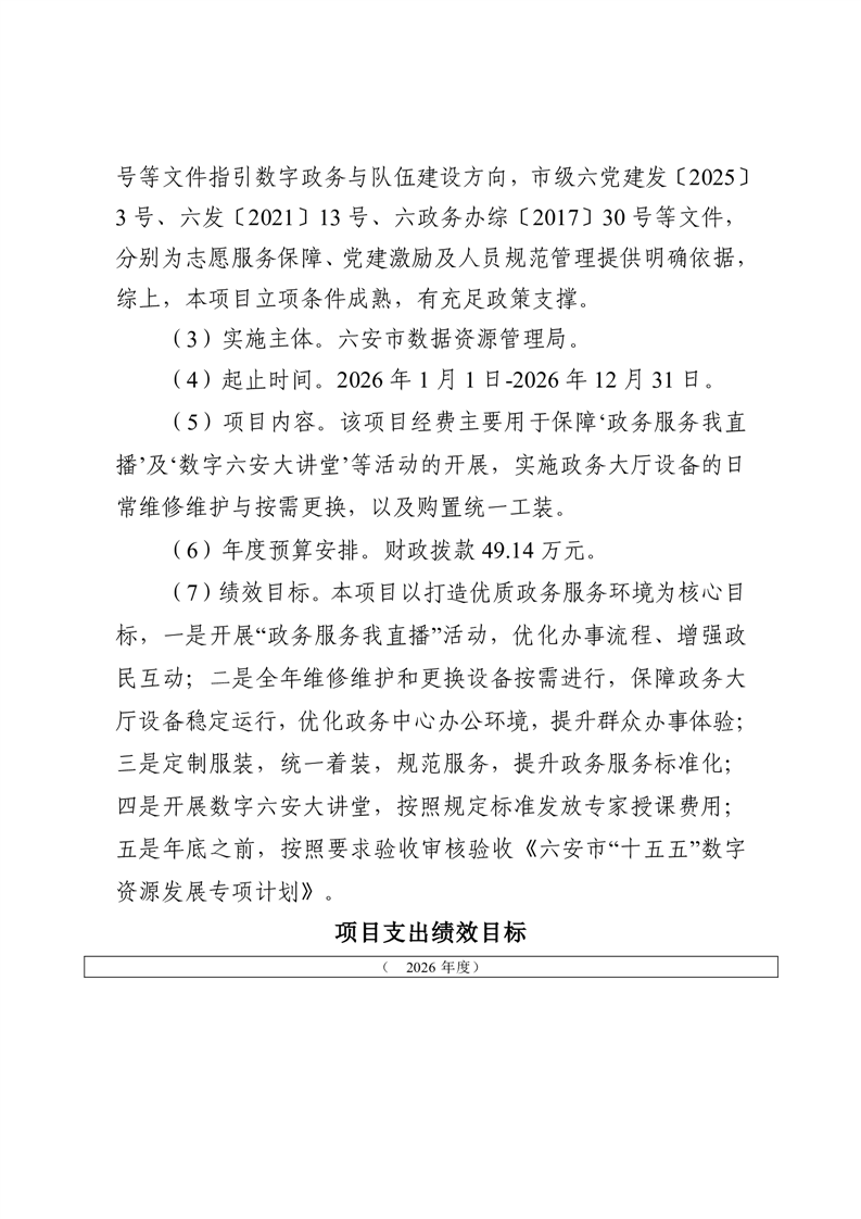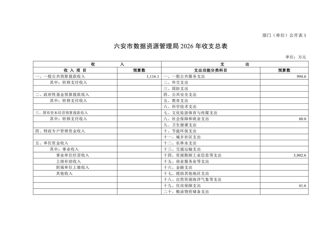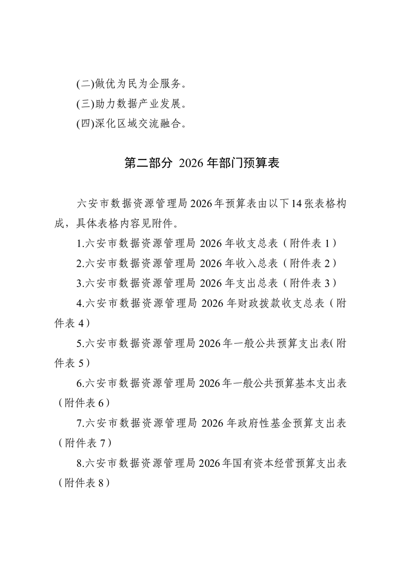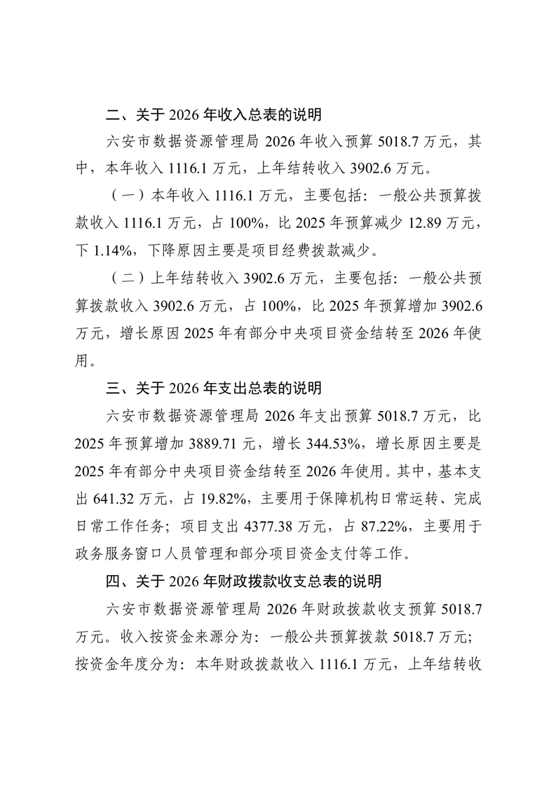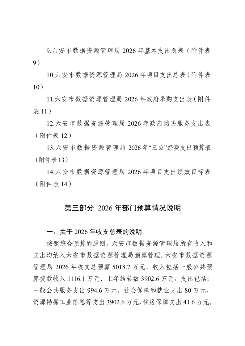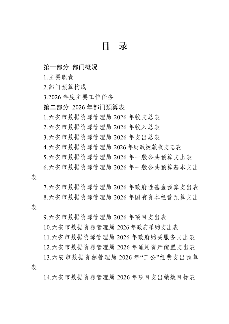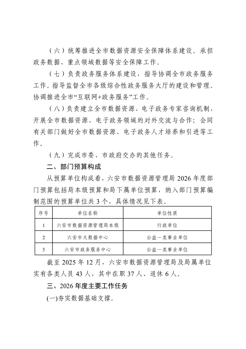 六安市数据资源管理局2026年部门预算公开
