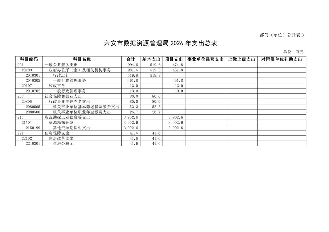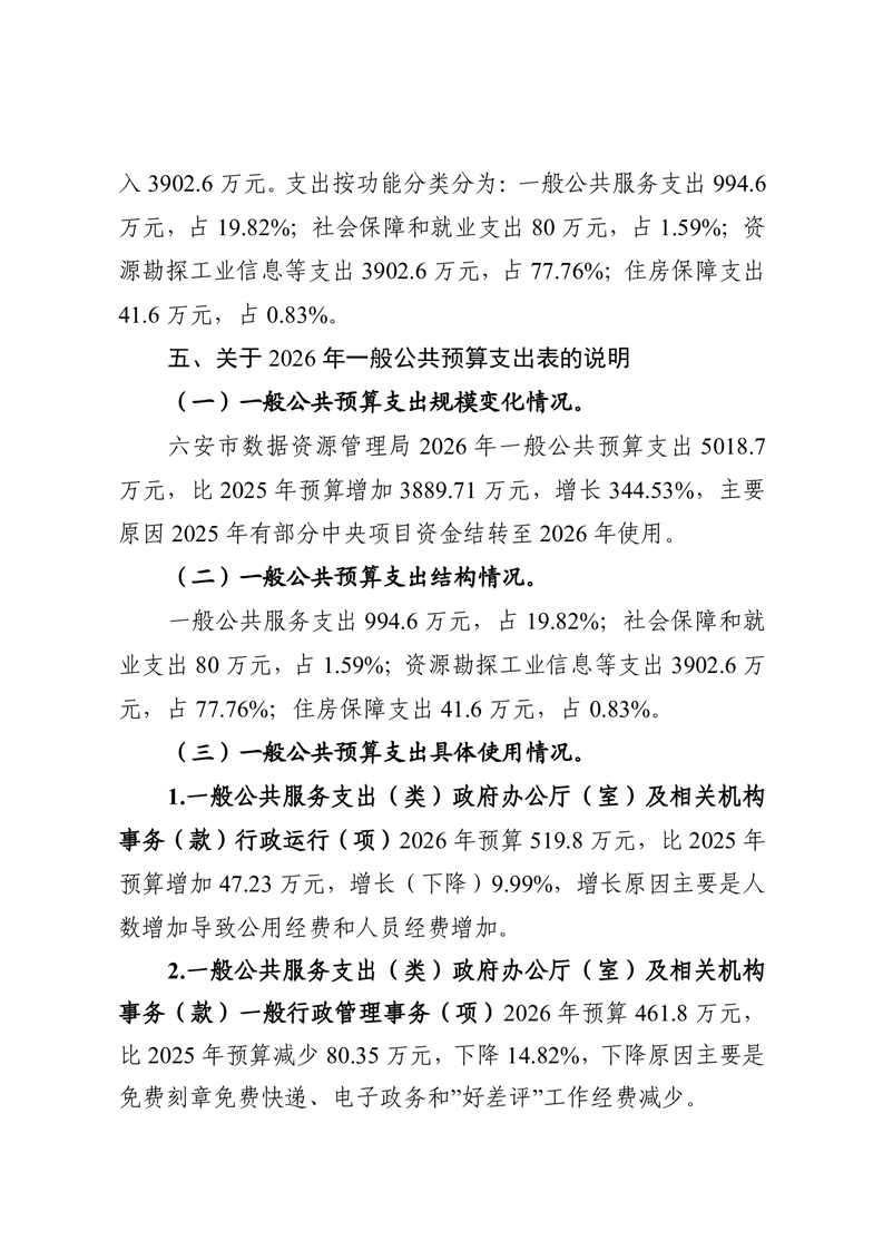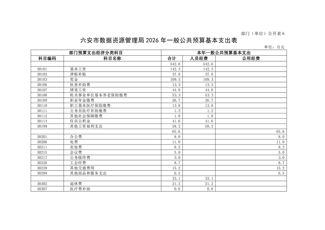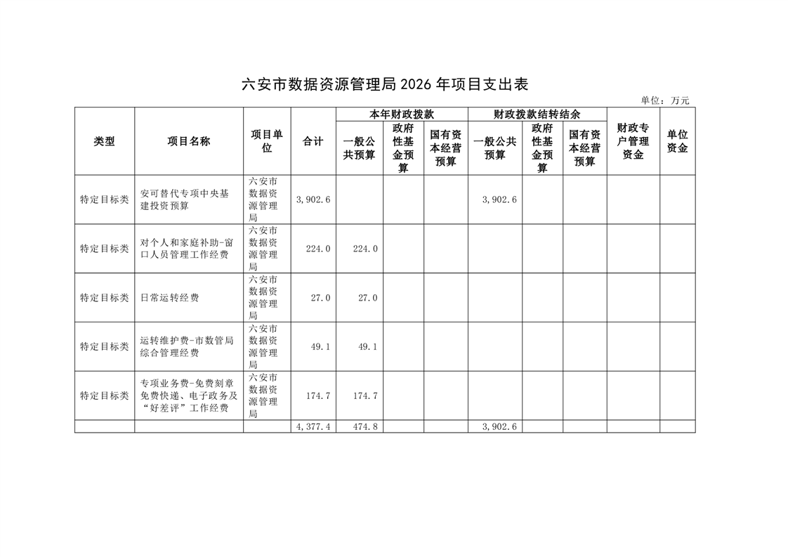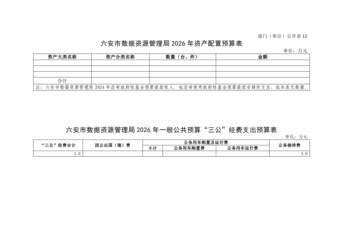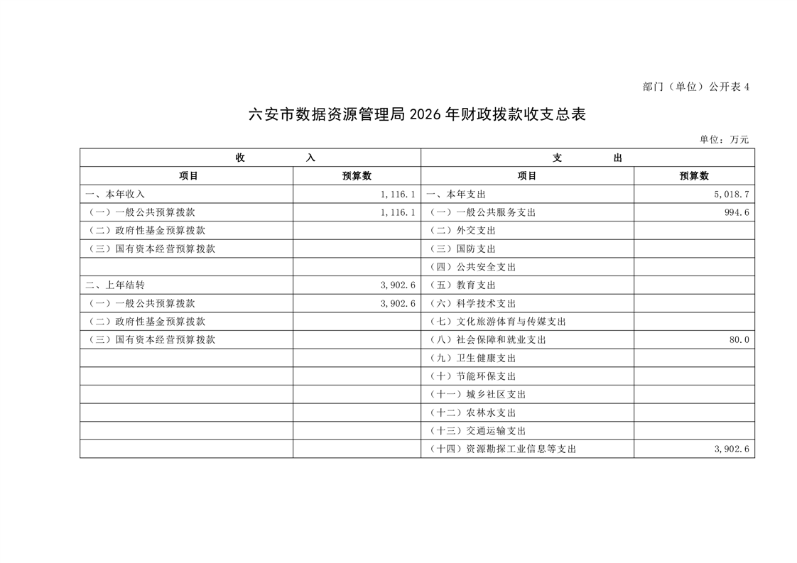 六安市数据资源管理局2026年部门预算公开
