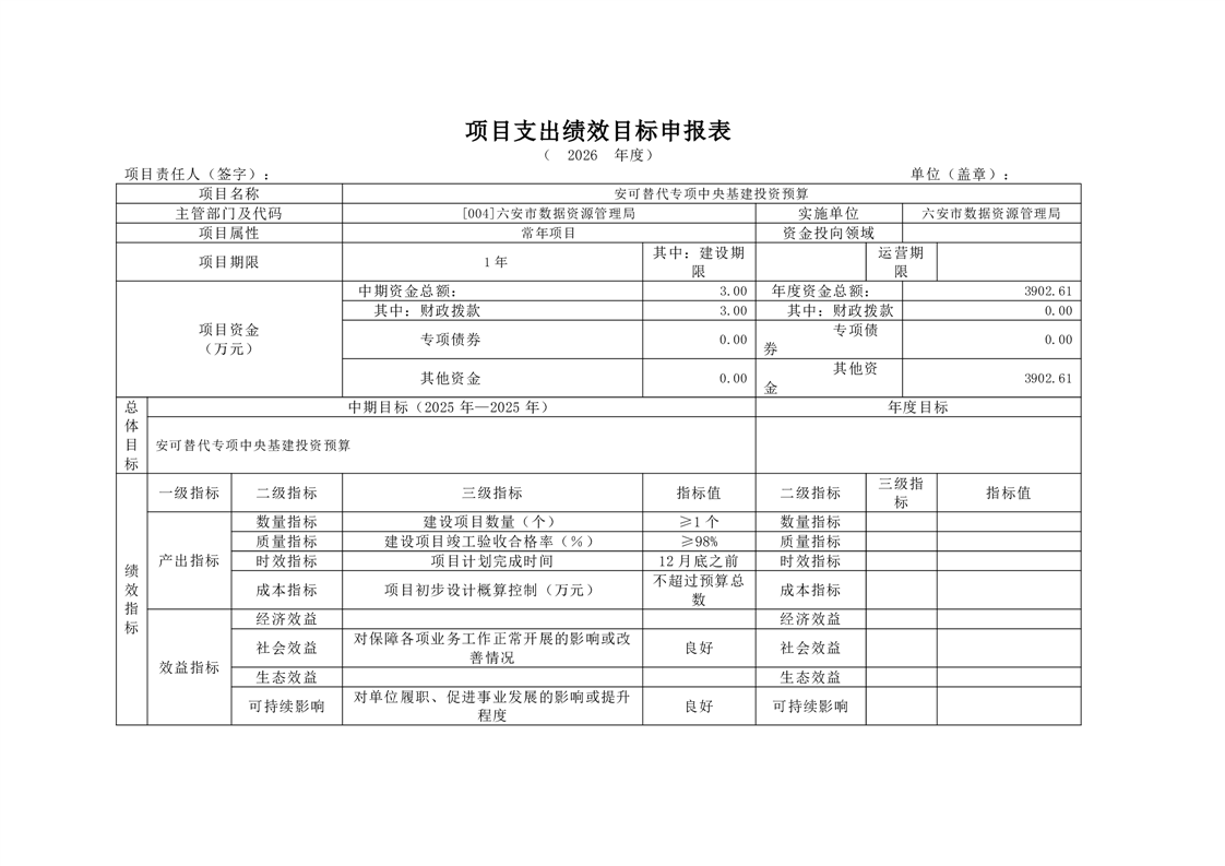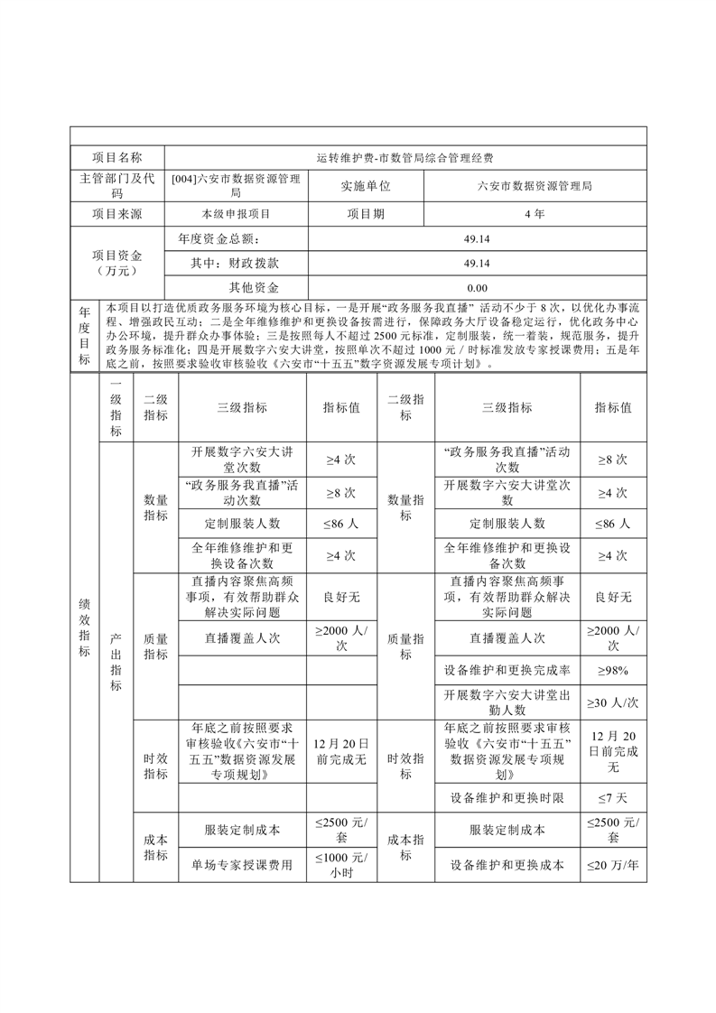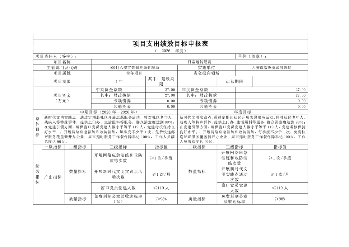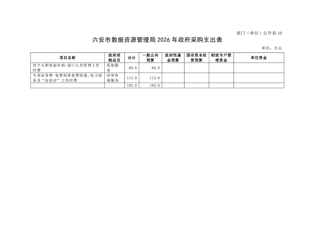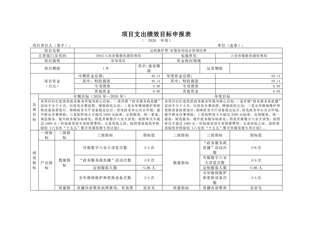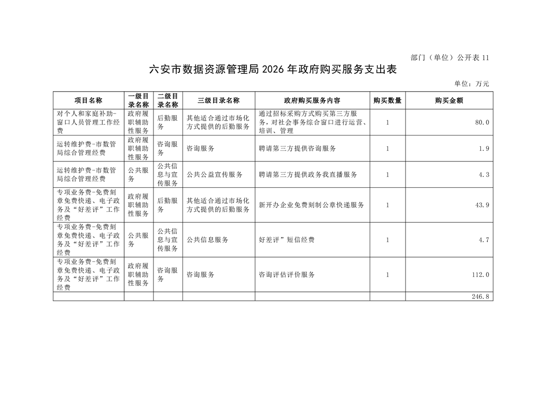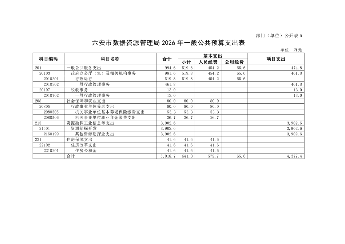 六安市数据资源管理局2026年部门预算公开